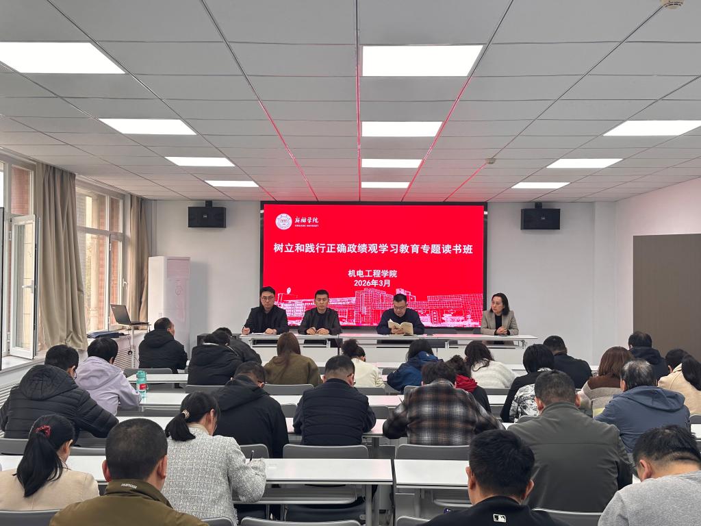 为深入学习贯彻习近平总书记关于树立和践行正确政绩观的重要论述,引导学院党员干部筑牢思想根基、校准履职方向,切实以正确政绩观推动学院各项事业高质量发展,3月30—31日,机电工程学院党委举办树立和践行正确政绩观学习教育专题读书班,学院全体党员干部参加此次学习,读书班采用书记领学、个人自学和集中研讨的方式进行。